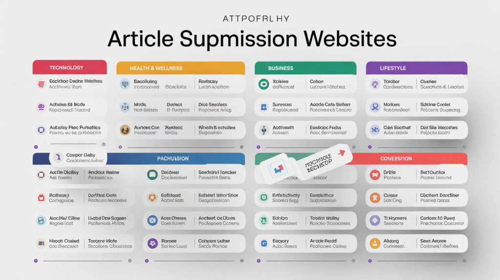 Article submission platforms vary based on approval processes, niche focus, and traffic potential. The main types include: