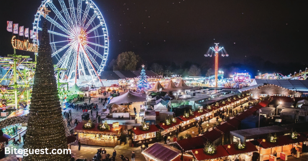 London’s Winter Wonderland is one of the largest festive events in the world. It blends traditional Christmas markets with rides, shows, and entertainment. Crowds enjoy ice sculptures, holiday performances, and themed bars. The market sparkles with lights, festive foods, and holiday charm.