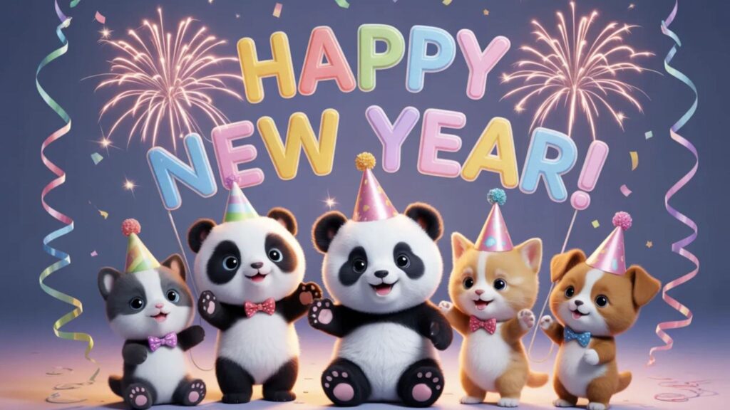 Cute Happy New Year GIFs are perfect for expressing warmth and affection. These often feature animated characters, adorable animals, or charming New Year scenes.