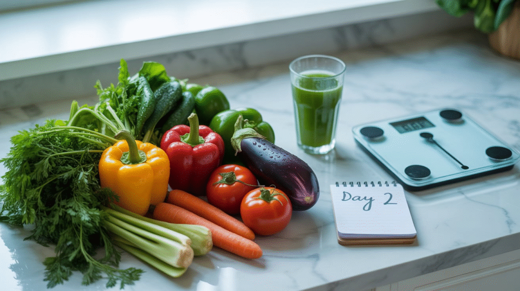 On Day 3, you eat both fruits and vegetables. Fruits give natural sugar, water, and vitamins. Vegetables provide fibre and minerals while keeping calories low. This mix keeps your stomach full and stops cravings. Eating a variety of types and colours provides your body with more nutrients. It also helps digestion and gives you energy for the following days.