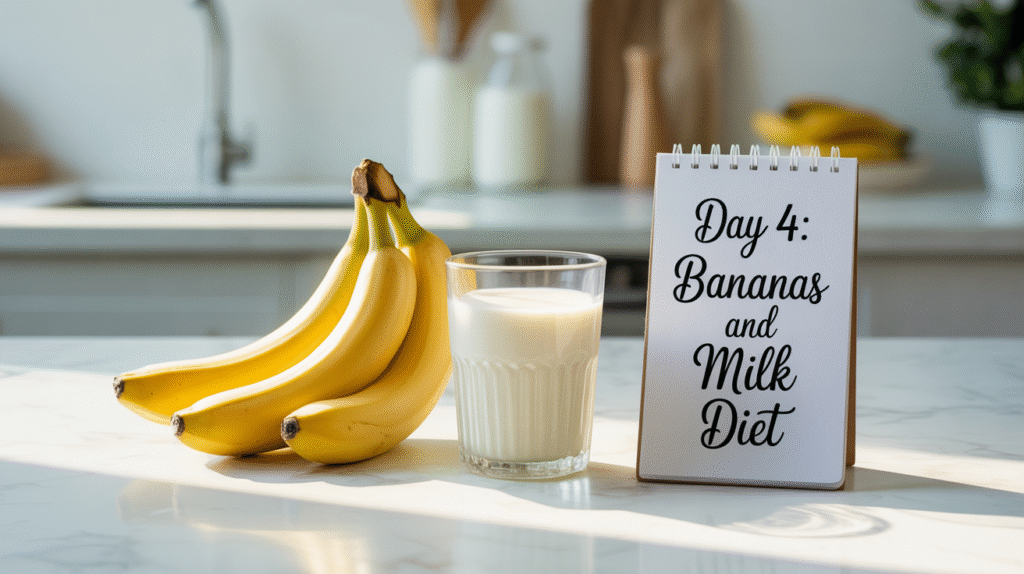 Day four will be all about eating bananas for potassium and drinking milk for calcium. These foods will provide the body with energy and essential nutrients. They will also keep you feeling full while being low in calories, making it easier for you to stick to the diet.