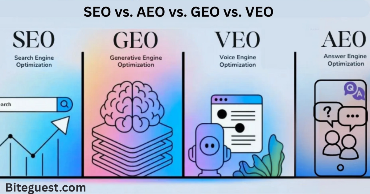- AEO focuses on answer-first content for voice and snippet searches.