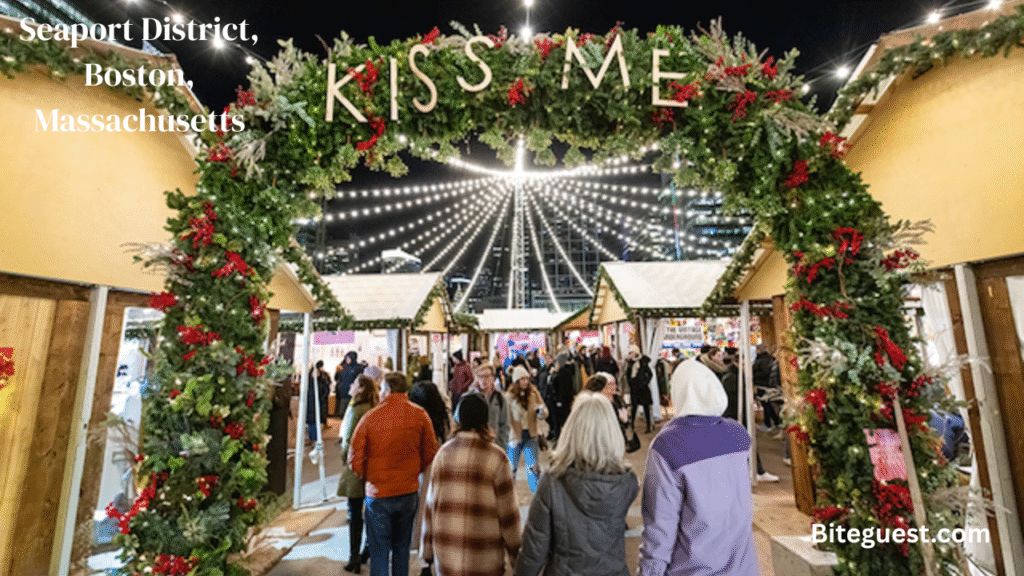 The Seaport District is modern, bright, and full of life. Snowport Market hosts more than 125 vendors offering handcrafted goods. Visitors enjoy menorah lighting, live music, and cultural events. From handmade scarves to holiday décor, this area is a favourite for people who love creativity and the waterfront atmosphere.
